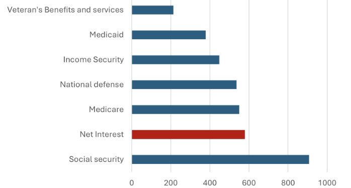 Chart 2: Net Interest Now the Second Largest Federal Outlay by Value — FY25 ($ billion)