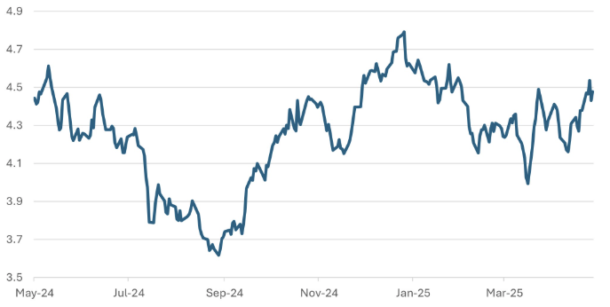 Chart 3: US 10-year Bond Yield Pushes Back Up to Around 4.50%