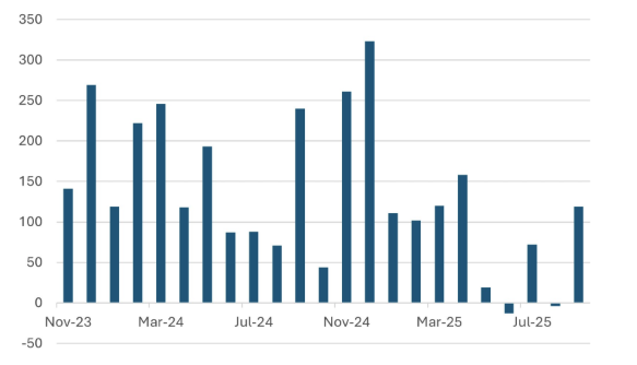 Europe’s fiscal story has deteriorated further. France’s failure to pass the revenue side of its 2026 budget highlights a deeper structural problem: high debt, a deficit still above 5%, and no parliamentary coalition willing to take responsibility. It isn’t a crisis, but risks are compounding. France may either miss its targets or deliver growth-damaging cuts.