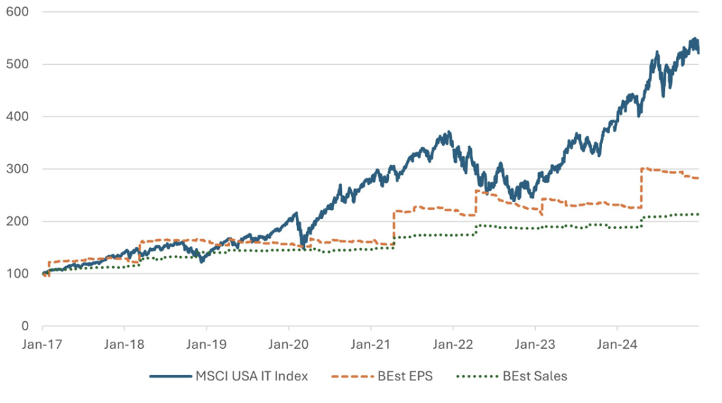 Chat 2: MSCI US IT Sector, Price Index Significantly Outpaces Earnings and Revenue