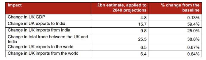 Table 1: mpact of UK-India Trade deal
