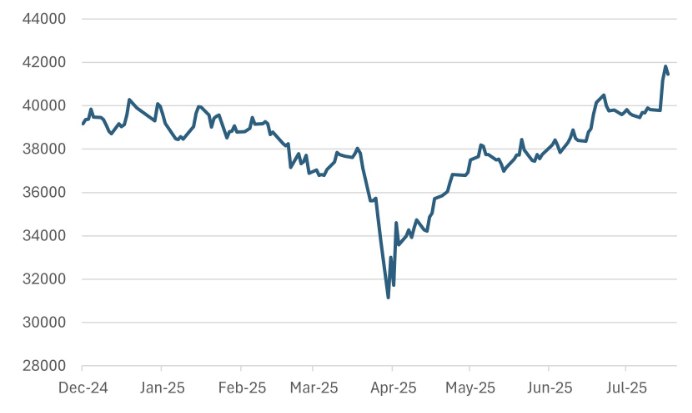 Yet, despite those developments, equity markets have barely blinked. In fact, the Nikkei is up 12% since mid-June, trading near 41,000—levels not seen since the early 1990s. Foreign inflows have surged, driven by the weak JPY, signalling a revival in corporate governance reforms, and solid Q2 earnings across autos and semiconductors.