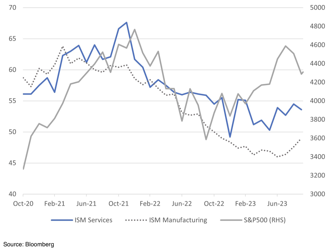 Chart 2: US Industrial confidence surveys supportive of the equity market