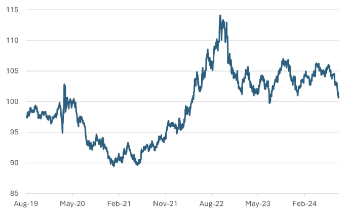 Chart 1: US Trade-Weighted Index Drops to the Low End of Trading Range