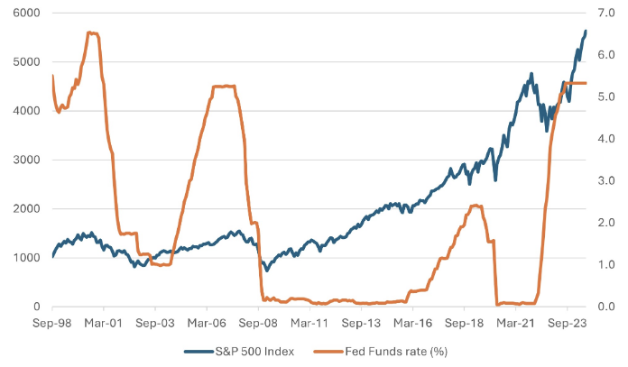 - Be mindful that history tells us that US rate cuts don’t necessarily mean better times for US equities