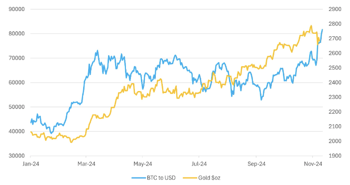 The dollar has rallied but so too Bitcoin and Gold. We believe more in the ongoing further appreciation of cryptocurrency and gold. The greater risk in the US is of higher inflation and more debt – these may be the defining measures of Donald Trump’s future presidency.