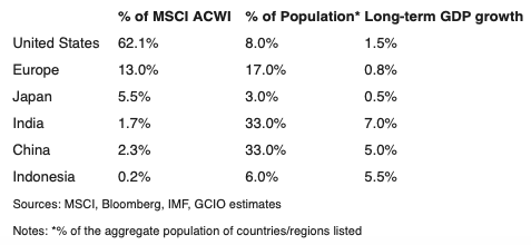 - Allocations to markets with better prospects than the US such as Japan and India should not be so heavily anchored on (low) MSCI index weightings