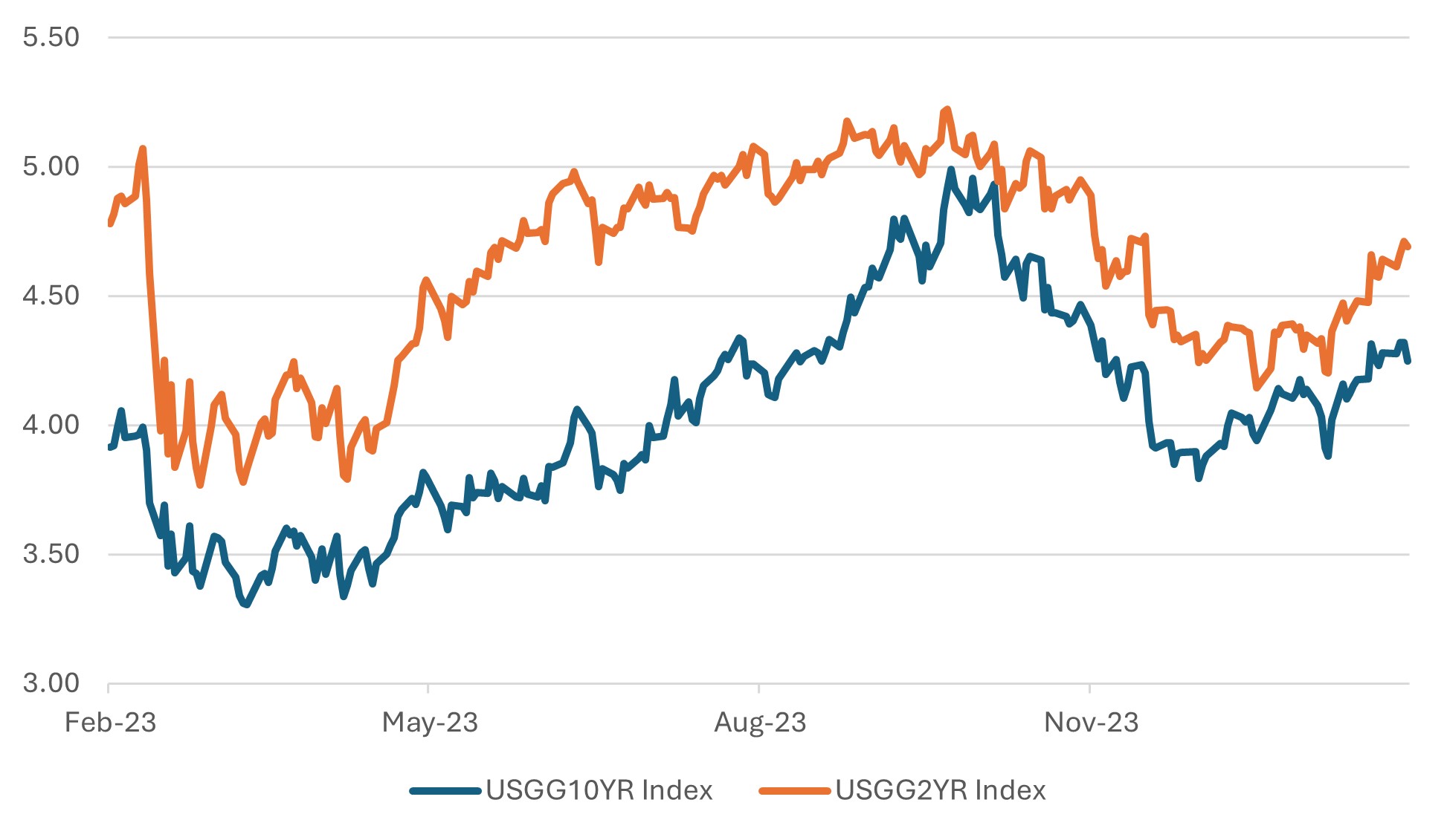 Chart 2: US 2-Year and 10-Year Bonds Re-Centred Around a Higher Yield