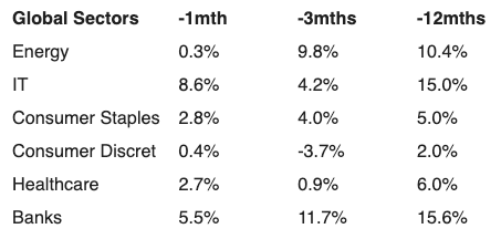 Table 2: Global equity sector returns for May