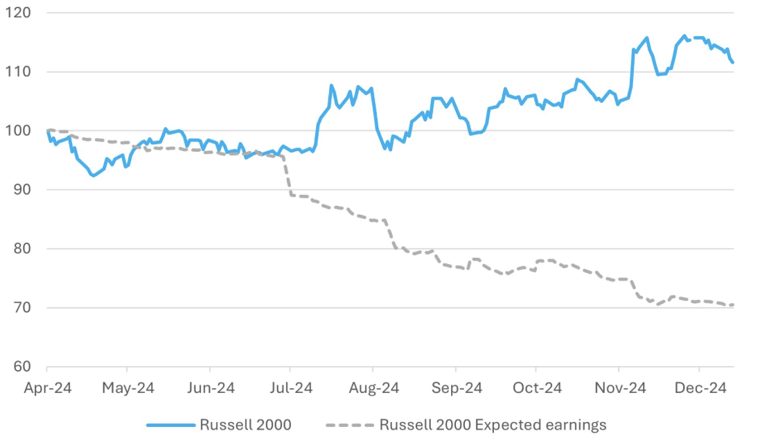 Chart 3: Russell 2000 Index Rise at Odds with Downgrades to Corporate Profit Forecasts