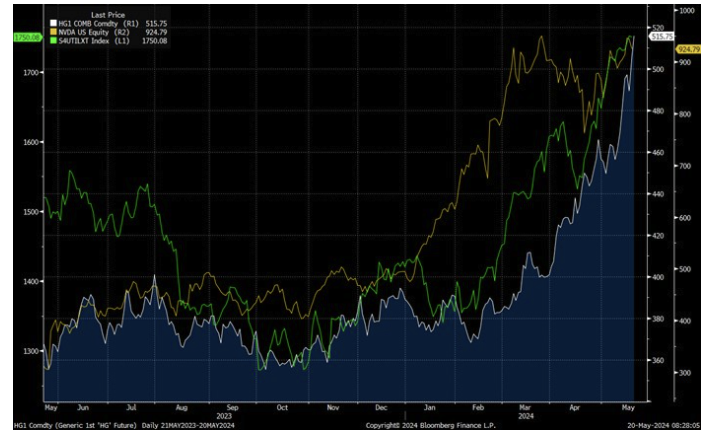 Chart 5: Copper price and US utilities index follow the path but not the absolute gains of NVIDIA