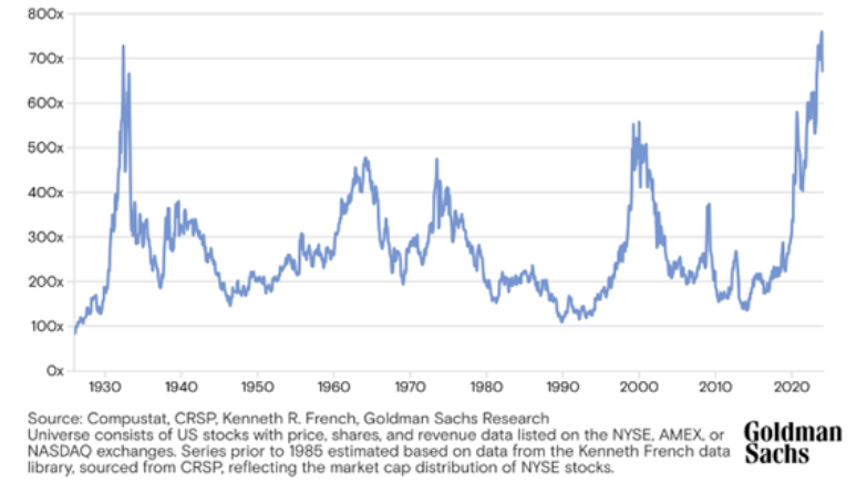 Chart 2: Ratio of the Market Value of the Largest US Company to the 75th Percentile Stock