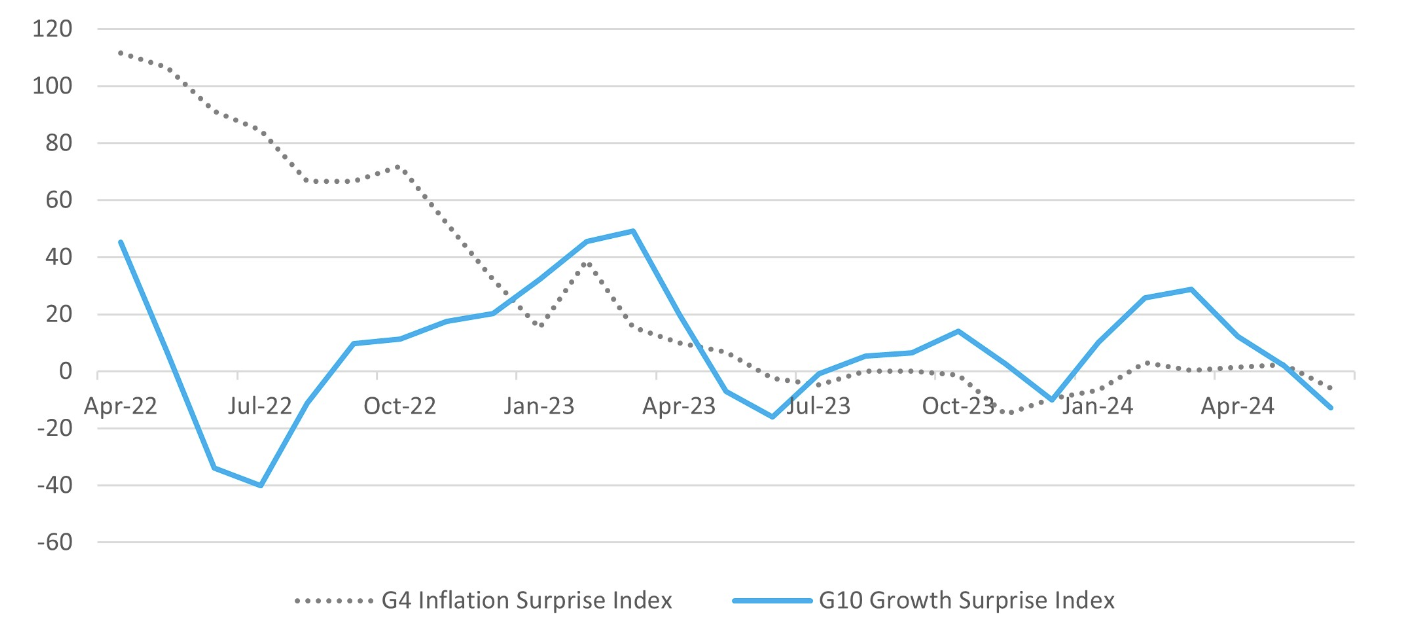 Both growth and inflation drifted lower through the second quarter. By the quarter’s close, most parts of the global economy experienced a downward bias in growth and inflation levels around market expectations.