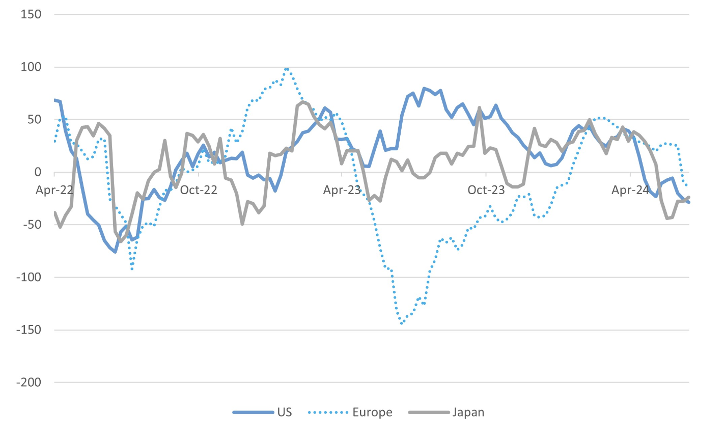 Economic growth momentum slipped in the major developed markets, with Europe and the United States showing signs of weakness as the quarter closed. A generic concern is that inflation has weighed on sentiment and spending power. Although job gains have been strong and wage growth has picked up, the persistence of inflation has surprised consumers, diminishing their appetite to spend. Additionally, the hesitant interest rate cuts from central bankers have not instilled confidence. The ECB initially appeared bold in cutting interest rates but did not promise future rate cuts. In the case of the Fed, their last policy meeting of the quarter saw them revise their expectations from three rate cuts for the year to just one. The market still anticipates up to two rate cuts by year-end.