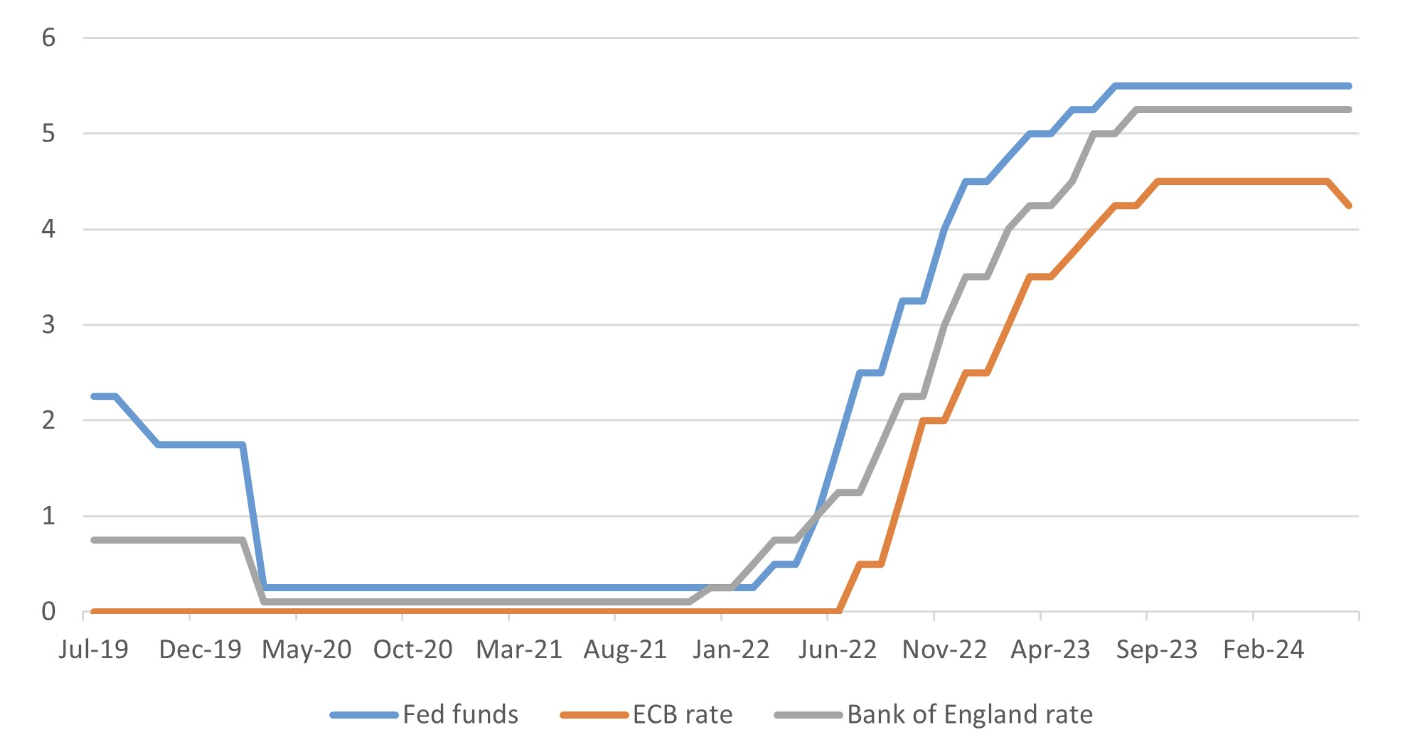 Central bankers have remained tentative in their easing through the second quarter. The ECB was the only major central bank to cut rates in line with direction they had given to the market in the last first quarter. The Fed mainly guided through its dot plots and various speeches by Fed governors that it was no longer minded to cutting rates three times through the year but just once.  In the UK inflation has surprised to the downside giving scope for the Bank of England to cut rates in the third quarter.