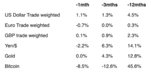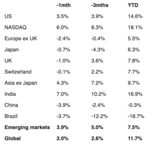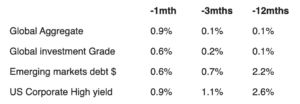 Global bonds held their levels, with high yield and emerging market bonds clipping their coupons, adding to their aggregate returns. The markets rocked backwards and forwards in terms of their anticipation of future interest rate cuts but the returns ended upquote modest on investment grade bonds. Amongst the total universe of high yield bonds default rates remain around the 2-3% level in line with long-term norms.