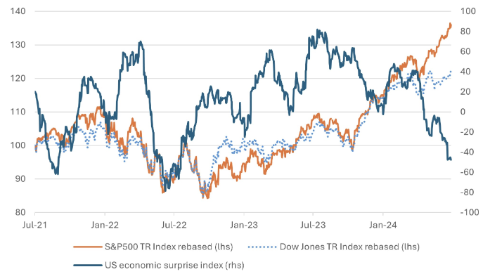 Chart 1: US Economic Surprise Index at its Lowest Since 2022 but Equities Rise