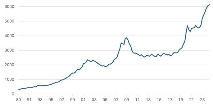 One supporting factor for risk assets is the substantial amount of money lying in money market funds that could be redirected to equity markets as interest rates fall. Over the past week, total money market fund assets rose by $40.9 billion to a record $6.14 trillion, up 8.1% year-to-date and 13.1% year-over-year.