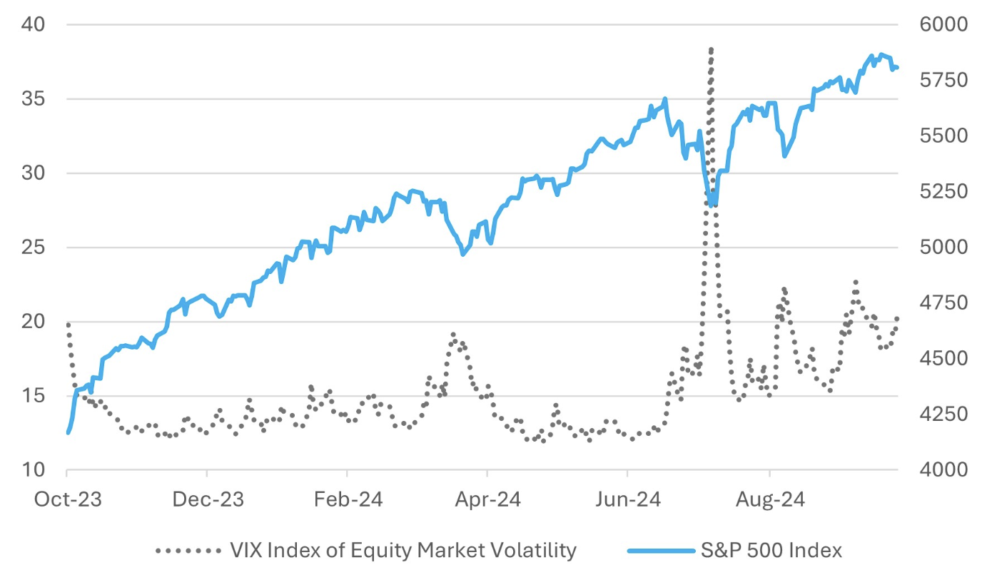 The US economy has generally surprised to the upside so far, and the Federal Reserve is expected to cut interest rates by an additional 25 basis points at its meeting on Thursday. With polls showing a tight race, a final, decisive outcome may take some time. Bonds have already seen a sell-off, driven by market concerns about potential inflation risks from further fiscal expansion and large ongoing supply. The 10-year government bond’s real yield is now approaching some of the highest levels observed in the past nine years.