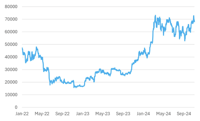 Cryptocurrencies have performed strongly of late, partly on anticipation of a favourable outcome for Donald Trump in the presidential election. However, attributing this momentum solely to an election outcome would oversimplify the complex dynamics driving the market, especially given the potential volatility if Trump fails to secure victory.