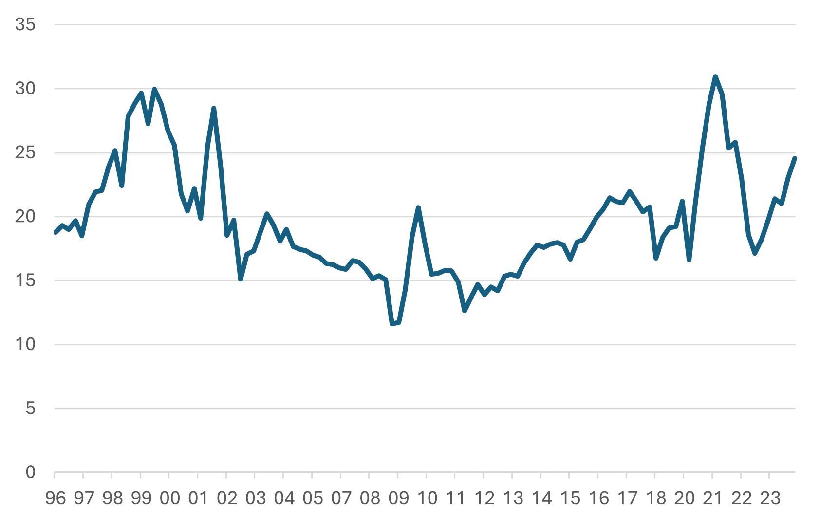While the current market valuation provides scant insight into short-term performance, several factors may temporarily sustain the US equity market’s strength. These include stronger-than-expected economic growth, signals from the Federal Reserve of a forthcoming rate cut, and the perceived corporate-friendly stance of a potential Trump presidency.