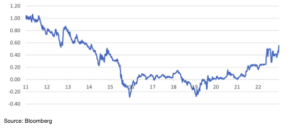 Chart 3: 10-year JGB Yields Potentially Moving Back to the Highest in a Decade