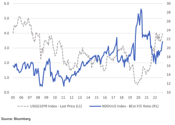 - A US 10-year bond yield of 4% is a challenge for US equity valuations