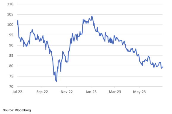 China’s GDP data last week disappointed the markets, with the CSI 300 equity index declining 2.0% on the week. Second-quarter GDP at 6.3% year-on-year was well below consensus expectations of 7.1%. Retail sales in June were up 3.1%, which is very modest considering the country is still in the rebound phase post the lockdowns. While the economy needs more confidence among householders and businesses, pressure must be building on the leadership to make a more significant shift in policy. The still higher youth unemployment rate at 21.3% in June will keep up the social pressure for some change of course by the policymakers.