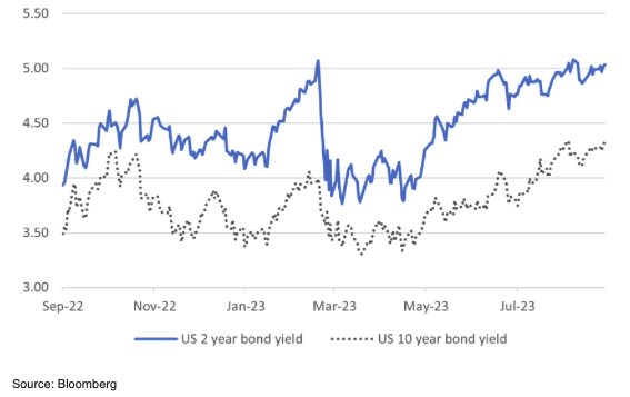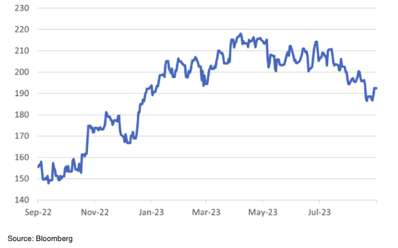 Meanwhile, on 14 September, the ECB announced a further 25bps rate hike, even though parts of the eurozone economy, such as Germany, remain weak. While the ECB signalled that the rates would remain higher for longer, the market drew comfort from the message that the central bank sent out – the rate hike was in all likelihood the final in this cycle.