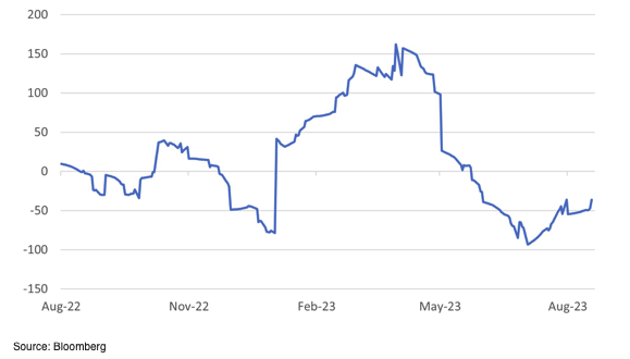 August saw a repeat of the 2022 syndrome. Like in 2022, both equities and bond markets delivered negative returns in August. The basic tenet of a diversified multi-asset portfolio is that equities and bonds are negatively correlated. Although equities notched up decent gains since the start of the year, the markets overall have found it tough to shake off the inflation worries, which has weighed on both equities and bonds.