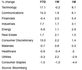 Table 1: S&P500 sector performances – Is the Technology sector’s leadership waning?